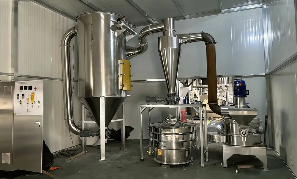 2.粉砕コア:高速回転粉砕ブレードと精密遠心分級機構を備えたブレードは、焼入れと耐摩耗技術を使用して精製され、高硬度と強力な耐摩耗性を備えています。果物や野菜の細胞壁を素早く粉砕でき、実際のニーズに応じて粉砕の細かさを柔軟に調整でき、さまざまなシナリオに適しています。グレーディング機構は粉末の粒子サイズを正確に選別することができ、粗大粒子の不純物を含まず、均一で繊細な最終製品を保証します。