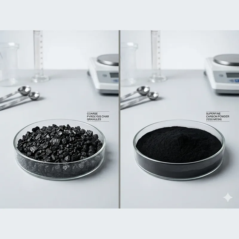 粗熱分解炭素は研磨性が高く、残留油を含み、嵩密度が非常に低い (ふわふわしている) ことがよくあります。従来のグラインダーは、急速な摩耗や内部の詰まりに悩まされてきました。 Starwin Mill XSW システムは、統合された空気分級を備えた高速機械衝撃設計を使用して、粗チャー (1 ~ 10 mm) を 325 ~ 1250 メッシュの一貫した D97 まで削減します。
